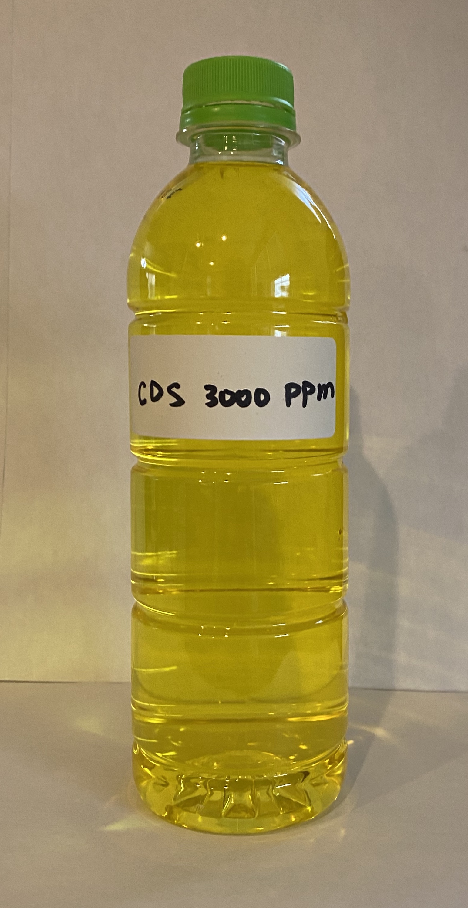 - 由於製作時的室溫大概在22oC左右,因此這個原液的濃度比3000ppm還高。由於標準的CDS的使用是用3000ppm,因此這個原液可以加1.67倍的水,成為3000ppm的濃度。