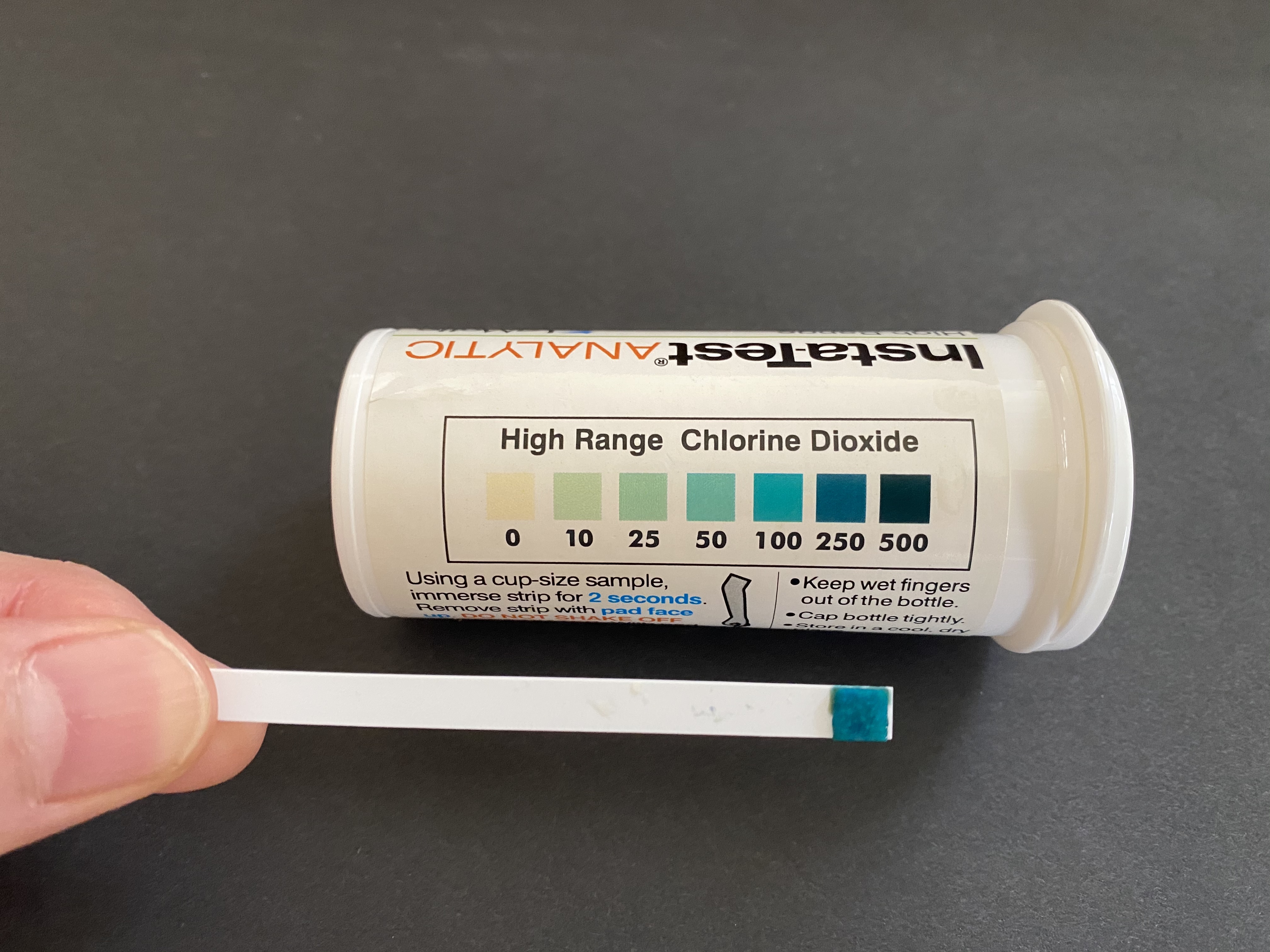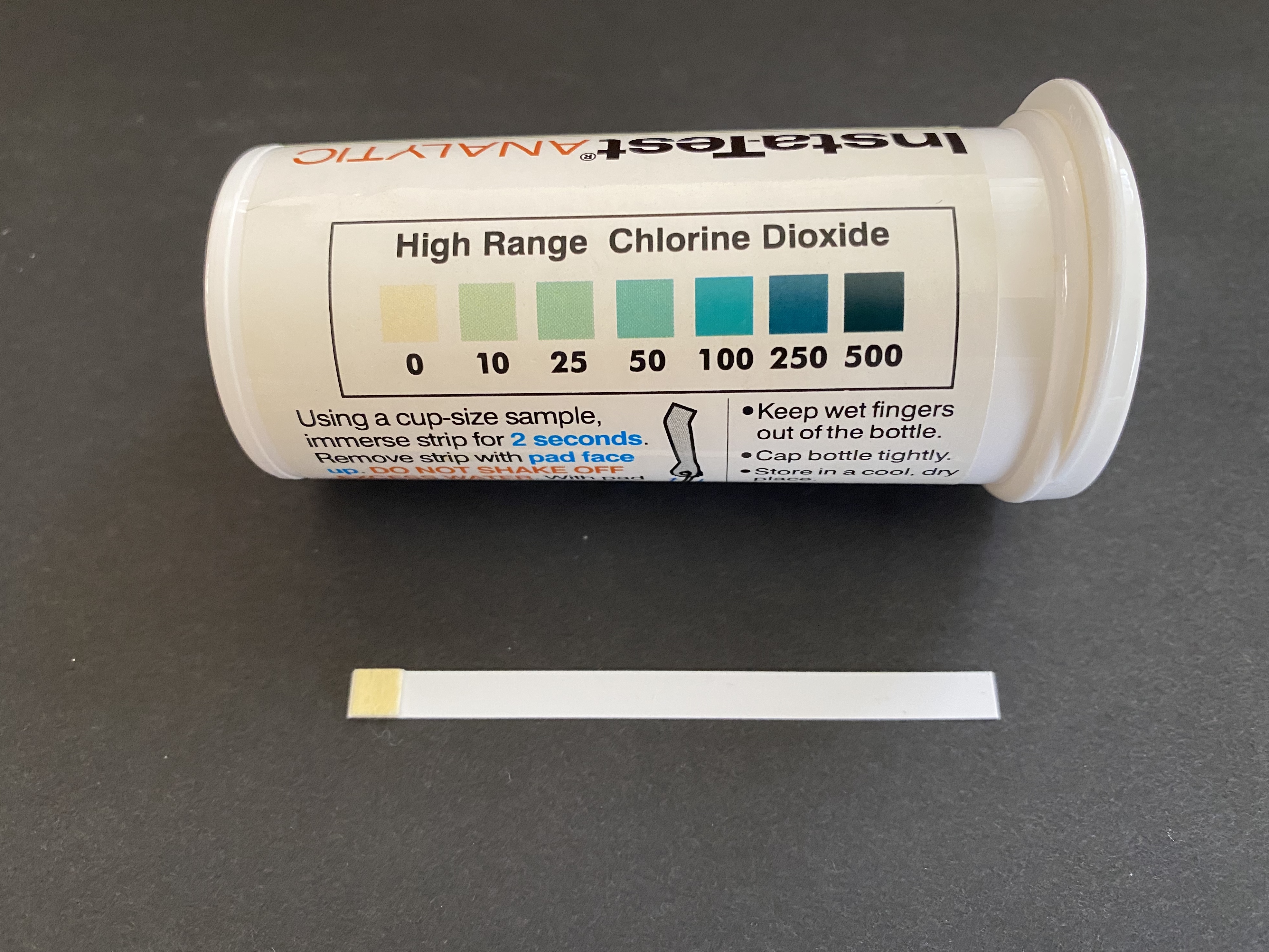 測試紙:LaMotte Insta-Test 3002 Chlorine Dioxide Single Factor Test Strip, 0-500ppm Range (Vial of 50 Strips),可以在【亞馬遜】買得到。